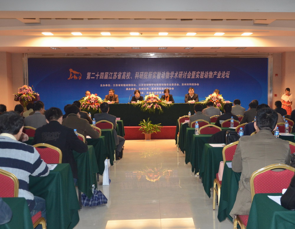2012年11月23日,第二十四届高校、科研院所实验动物科学管理学术研讨会暨实验动物产业论坛在苏州召开。此次会议由江苏省实验动物协会、江苏省动物学会实验动物专业委员会、苏州市科学技术协会联合主办, 苏州大学实验动物中心承办。江苏省科技厅科技机构与条件处处长徐婷婷、江苏省实验动物协会理事长孟庆如、苏州大学副校长蒋星红、科学技术与产业部科学技术处处长郁秋亚、医学部书记戴荣明、医学部副主任王建荣参加了开幕式。参加本次会议的还有来自上海、浙江、山东等省市的实验动物管理部门的领导、全省高校和科研院所的实验动物专家以及实验动物相关生产企业代表。会议由王建荣主持。