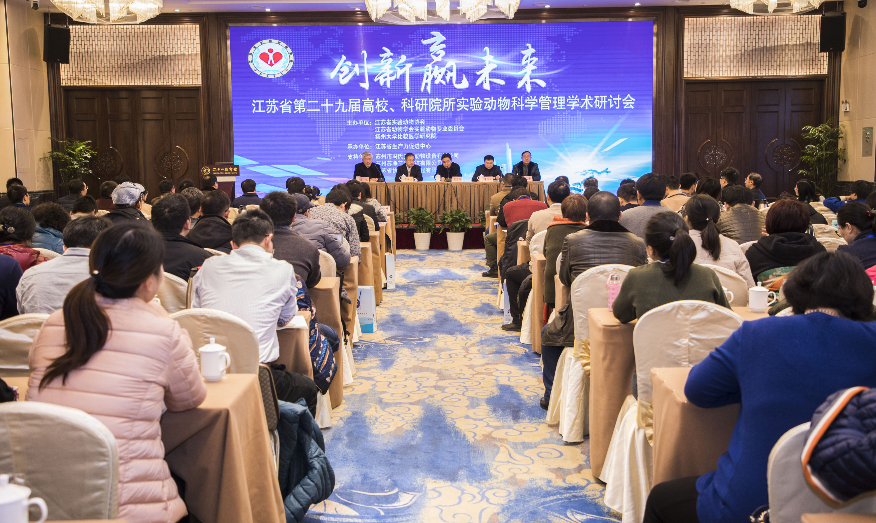 1月17日-20日,“江苏省第二十九届高校、科研院所实验动物科学管理学术研讨会”在有着悠久历史的文化名城-扬州顺利召开,来自北京、上海、广东、浙江、山东、安徽等兄弟省市的科技管理人员、专业技术人员及企业代表200余人参加了会议。扬州大学副校长黄建晔出席了会议并向与会代表介绍了扬州大学发展情况及今后发展目标,江苏省科技厅条件处副处长李汉中出席了会议并讲话,江苏省实验动物协会常务副理事长肖杭主持大会开幕式。