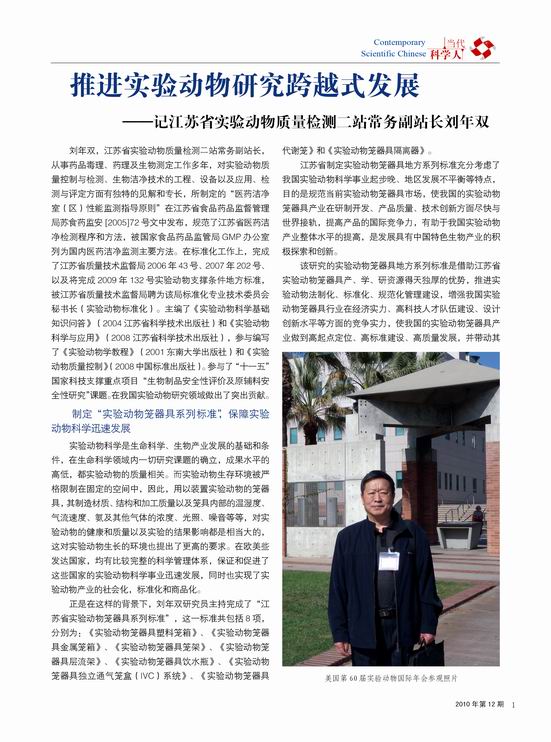 中国科技成果杂志专访江苏省实验动物质量检测二站刘年双常务副站长