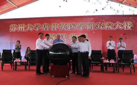 全国政协常委梁保华,省委常委、市委书记蒋宏坤,市委常委、园区工委书记王翔,市委常委、宣传部长蔡丽新,副市长徐明,苏州大学党委书记王卓君,校长朱秀林等出席奠基仪式。美国唐仲英基金会董事长唐仲英,中国工程院院士、苏州大学医学部名誉主任阮长耿到场祝贺。