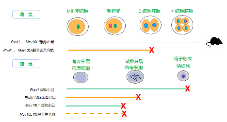 PIWIL1结合的piRNA从29-nt逐渐过渡到23-nt。敲除Piwil1基因造成卵细胞中ERV和LINE1等逆转座子的异常积累,同时导致母源mRNA降解减慢和胚胎早期发育中合子基因激活(ZGA)失败。